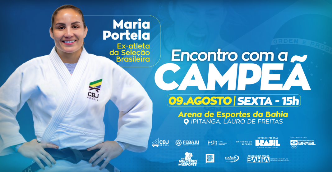 No dia 09 de agosto, a judoca Maria Portela participa de um encontro na Arena de Esportes da Bahia, em Lauro de Freitas, iniciando a programação do Campeonato Brasileiro Sub-21 de Judô, com apoio do Núcleo Mais Mulheres no Esporte. A atividade contemplará 200 crianças e adolescentes que participam do projeto de iniciação esportiva “Lutas em Combate”, realizado pela Federação Baiana de Judô e Confederação Brasileira de Judô no equipamento esportivo e no Centro de Boxe e Artes Marciais Waldemar Santana, no Largo de Roma, com apoio do Governo Estadual, através da Superintendência dos Desportos do Estado da Bahia (Sudesb).