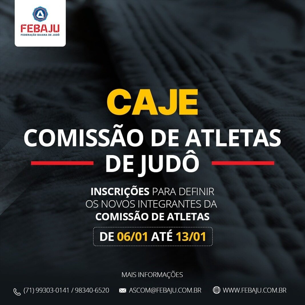 O presidente da Federação Baiana de Judô (Febaju), Marcelo Ornelas, no uso das suas atribuições e no cumprimento do estatuto da entidade, anunciou nessa quarta-feira (6), o edital de convocação de atletas para a Comissão de Atletas de Judô (CAJE). A Comissão será formada a cada 04 (quatro) anos, sendo composta por 07(sete) atletas, pelo voto direto e individual, com registro válido no sistema eletrônico “Zempo” da Confederação Brasileira de Judô (CBJ), em eleição organizada pela Febaju sob a coordenação da Comissão Eleitoral e, prevalecendo os impedimentos estatutários.
