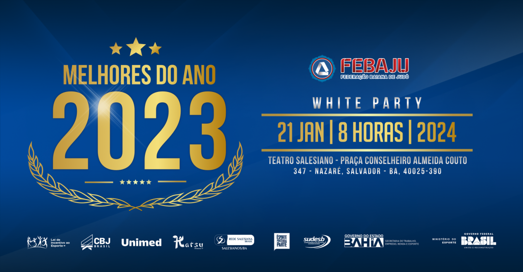 A Federação Baiana de Judô (Febaju) promove a cerimônia dos Melhores do Ano 2023 do judô baiano no Teatro do Salesiano, no dia 21 de janeiro, a partir das 8h, com homenagens a atletas, entidades parceiras e clubes de destaque na última temporada.