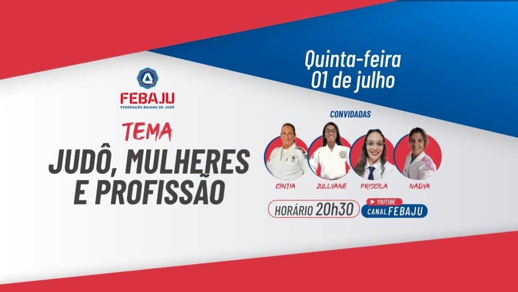 Na oportunidade, será discutido o tema “Judô, Mulheres e profissão” e contará com a participação das professoras Jullyane dos Santos, Priscila Ceuta, Nadya Soares e Cíntia Dias!! 🥋🤩😉