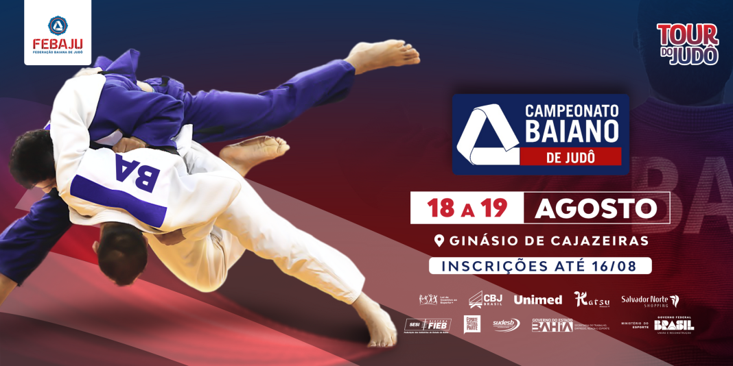 Nos dias 18 e 19 de agosto, a Federação Baiana de Judô (Febaju) promove o Campeonato Baiano de Judô, no Ginásio de Cajazeiras, em Salvador. As inscrições para a competição podem ser feitas até às 23h59 do dia 16 de agosto através da plataforma Zempo (www.zempo.com.br). Os combates da competição acontecerão no dia 19 de agosto (sábado). Nos tatames estarão atletas das classes sub-11, sub-13, sub-15, sub-18, sub-21, sênior, iniciantes e veteranos.